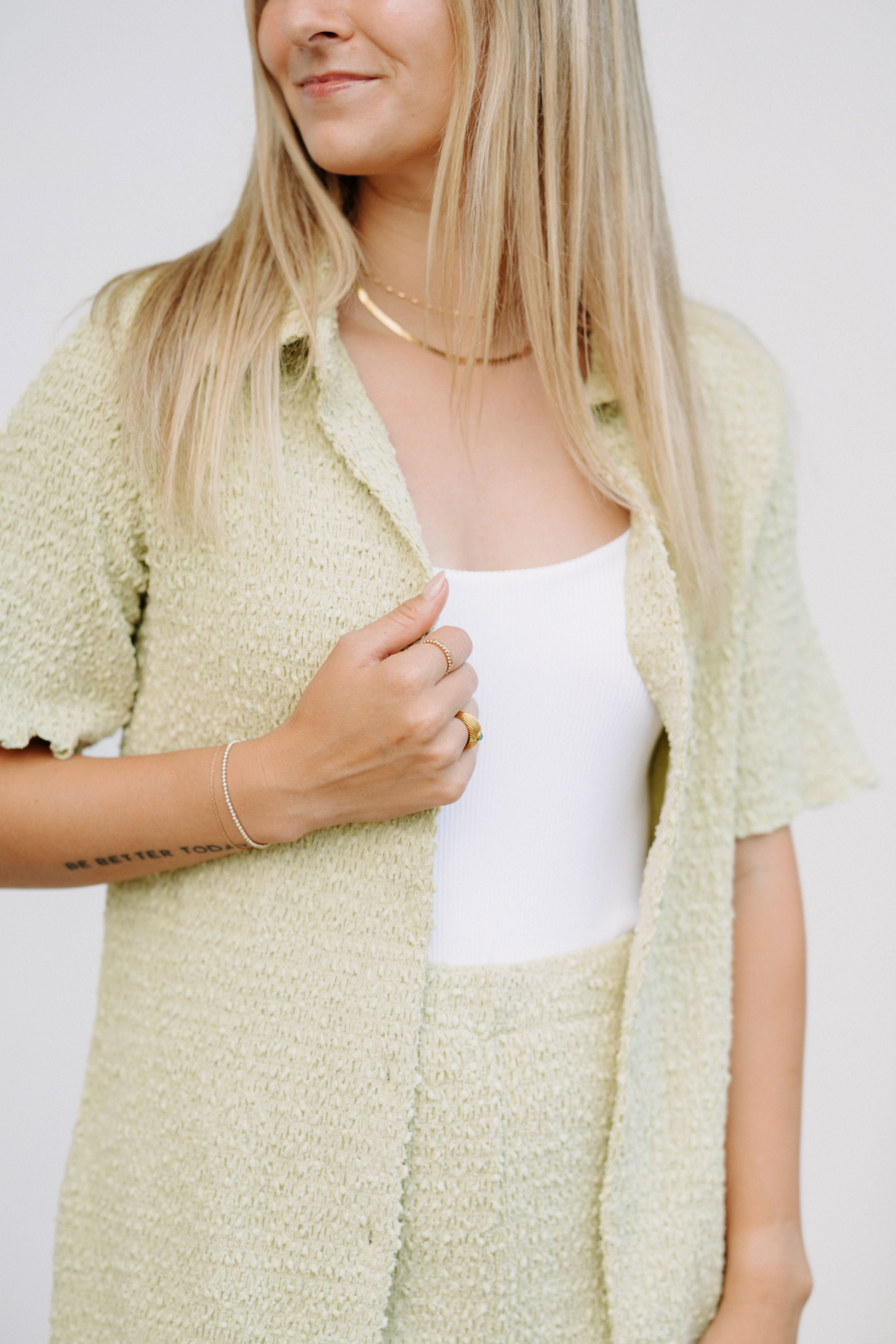 The Maldives Set is a stunning textured two piece short set that has endless styling opportunities! We love all the details in this from the beautiful textured weave to the scalloped hem and longer sleeve length it's definitely a must have for the summer!