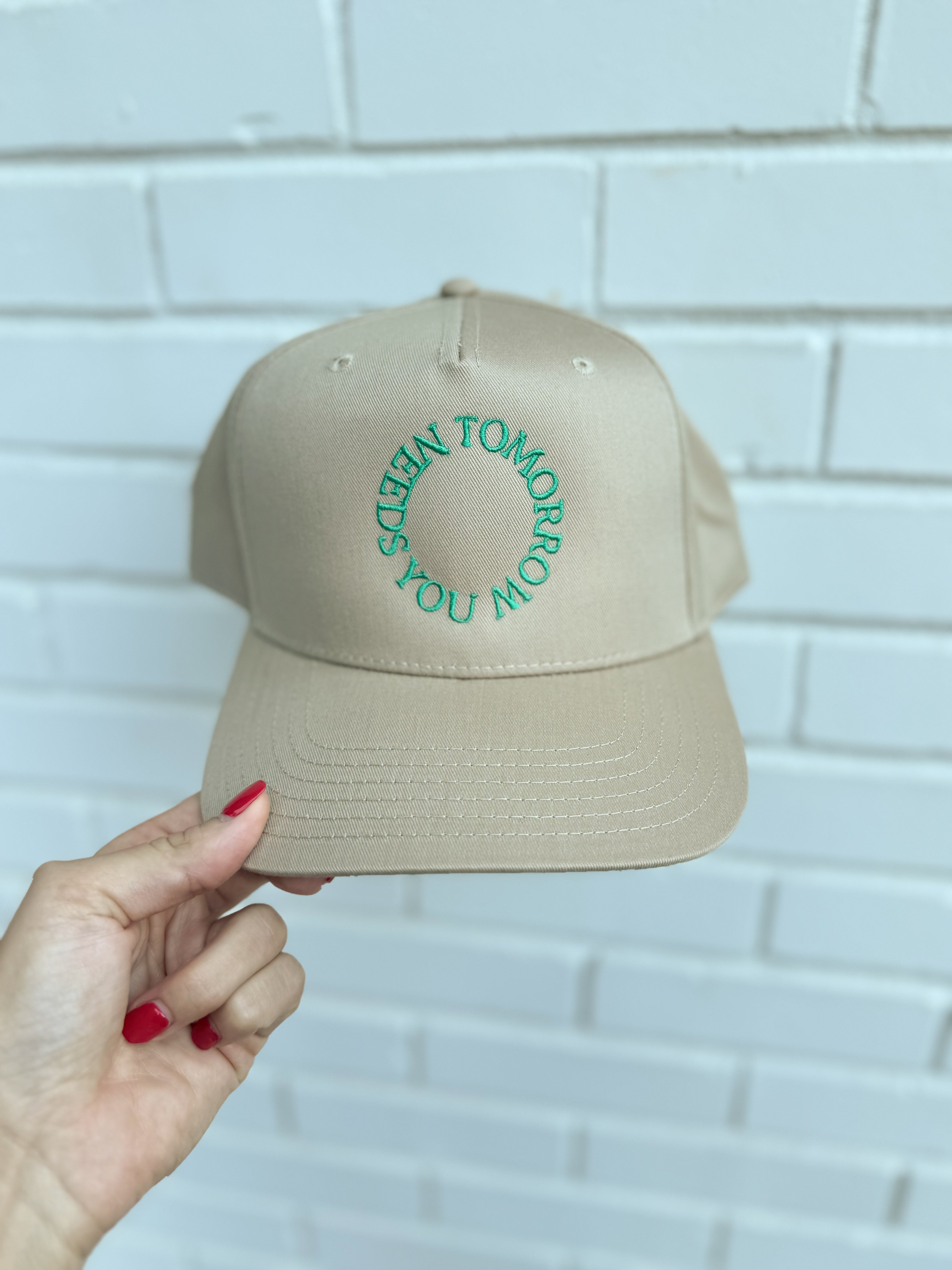 Support those in need with our Tomorrow Needs You Hat. This embroidered hat serves as a reminder to keep going, even during tough times. Show your support and spread positivity with this stylish and meaningful accessory.