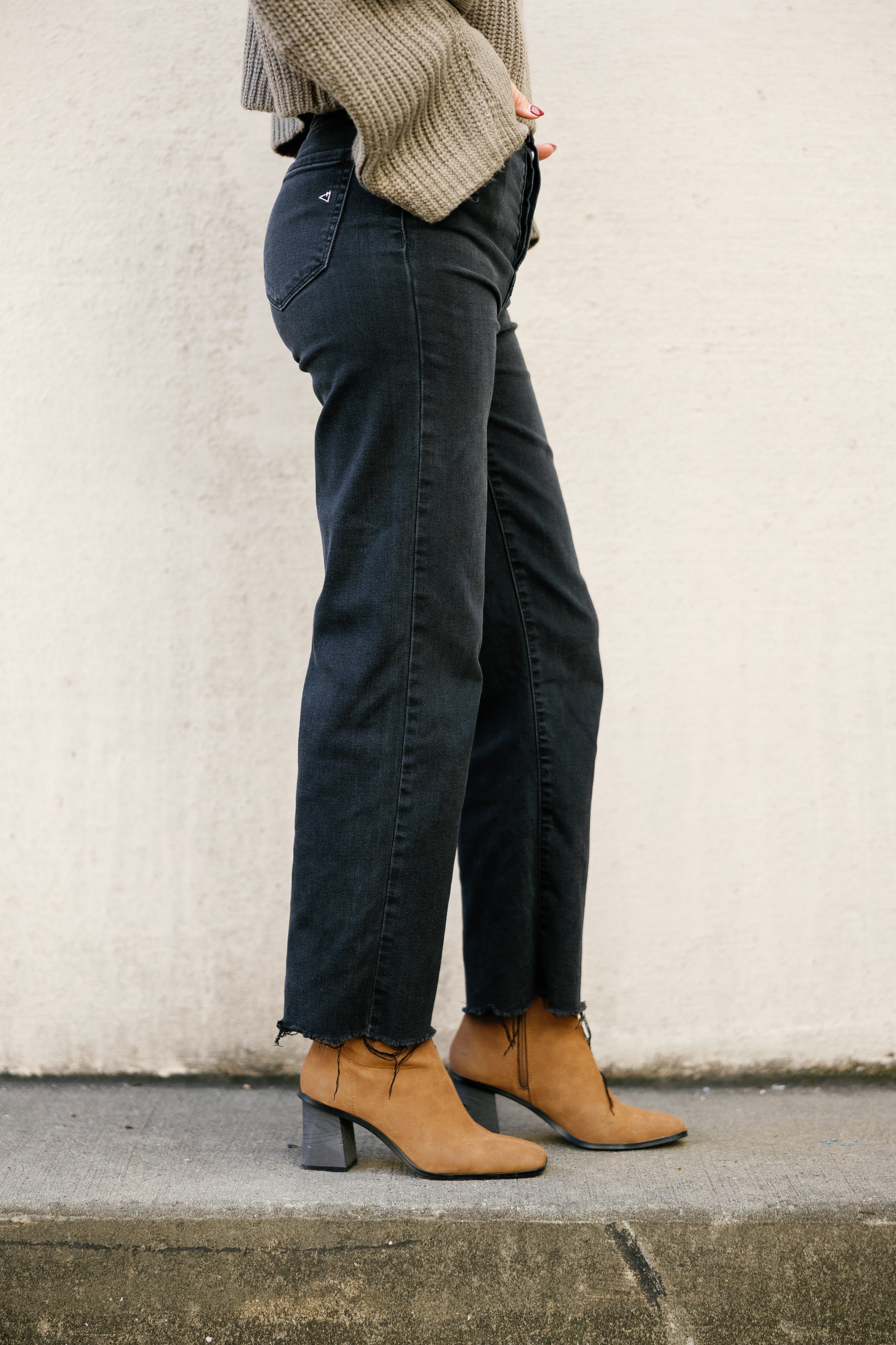 These high-waisted straight-leg jeans are your new go-to for effortless style. The cropped length hits just right, while the generous stretch fabric moves with you all day—no stiffness, just comfort. The sleek black wash pairs with everything in your closet, making these a versatile essential that works from casual weekends to dressed-up nights out. Slip them on and feel the difference quality denim makes.