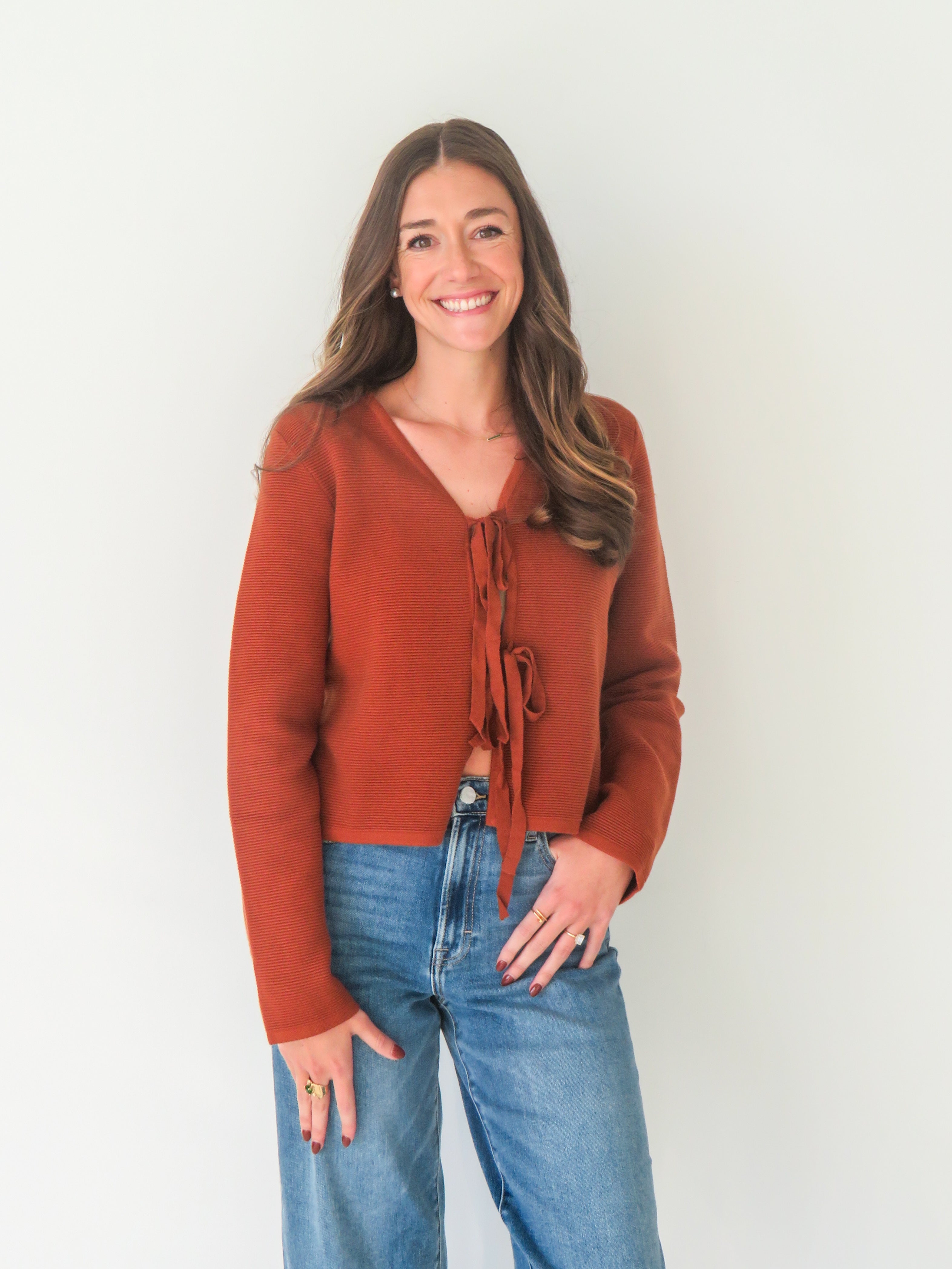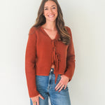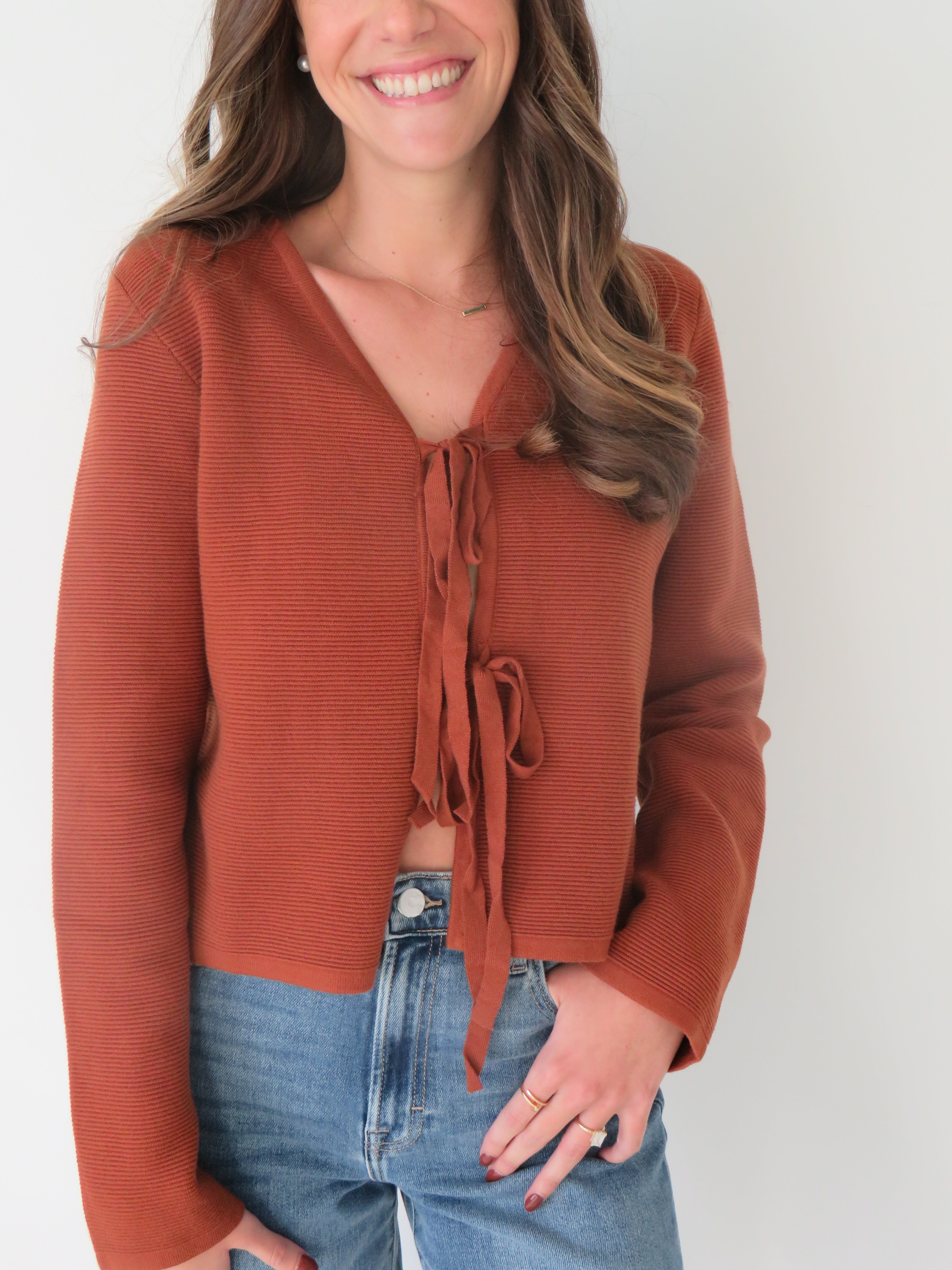 Effortlessly chic meets comfort in this twist and tie cardigan. The ribbed knit hugs your curves in all the right ways, while the adjustable front tie lets you customize your silhouette—cinch it for definition or leave it loose for laid-back elegance. Perfect for layering over everything from dresses to tees, this piece transitions seamlessly from casual coffee runs to dinner dates. Cozy enough for lounging, polished enough to impress.