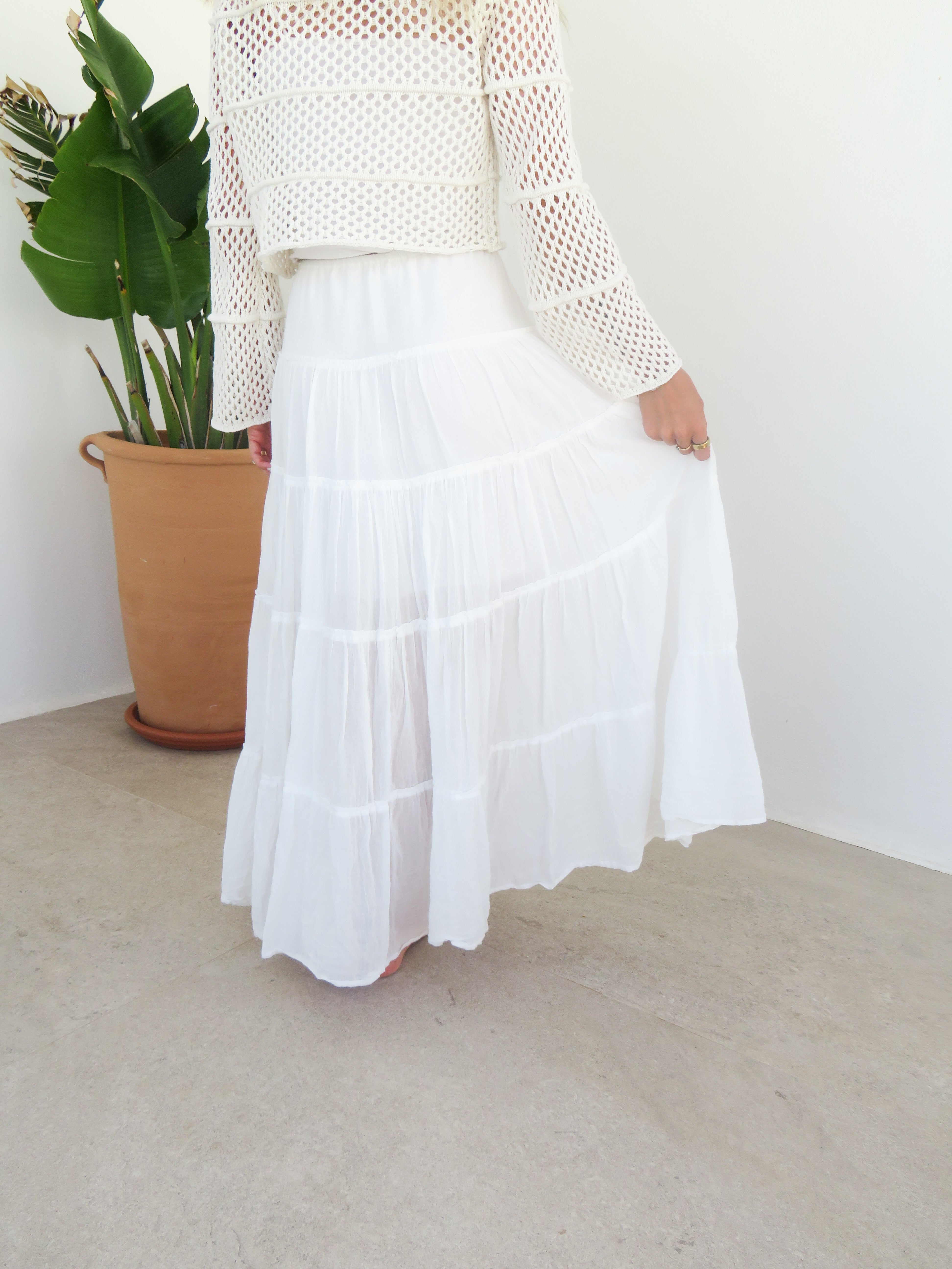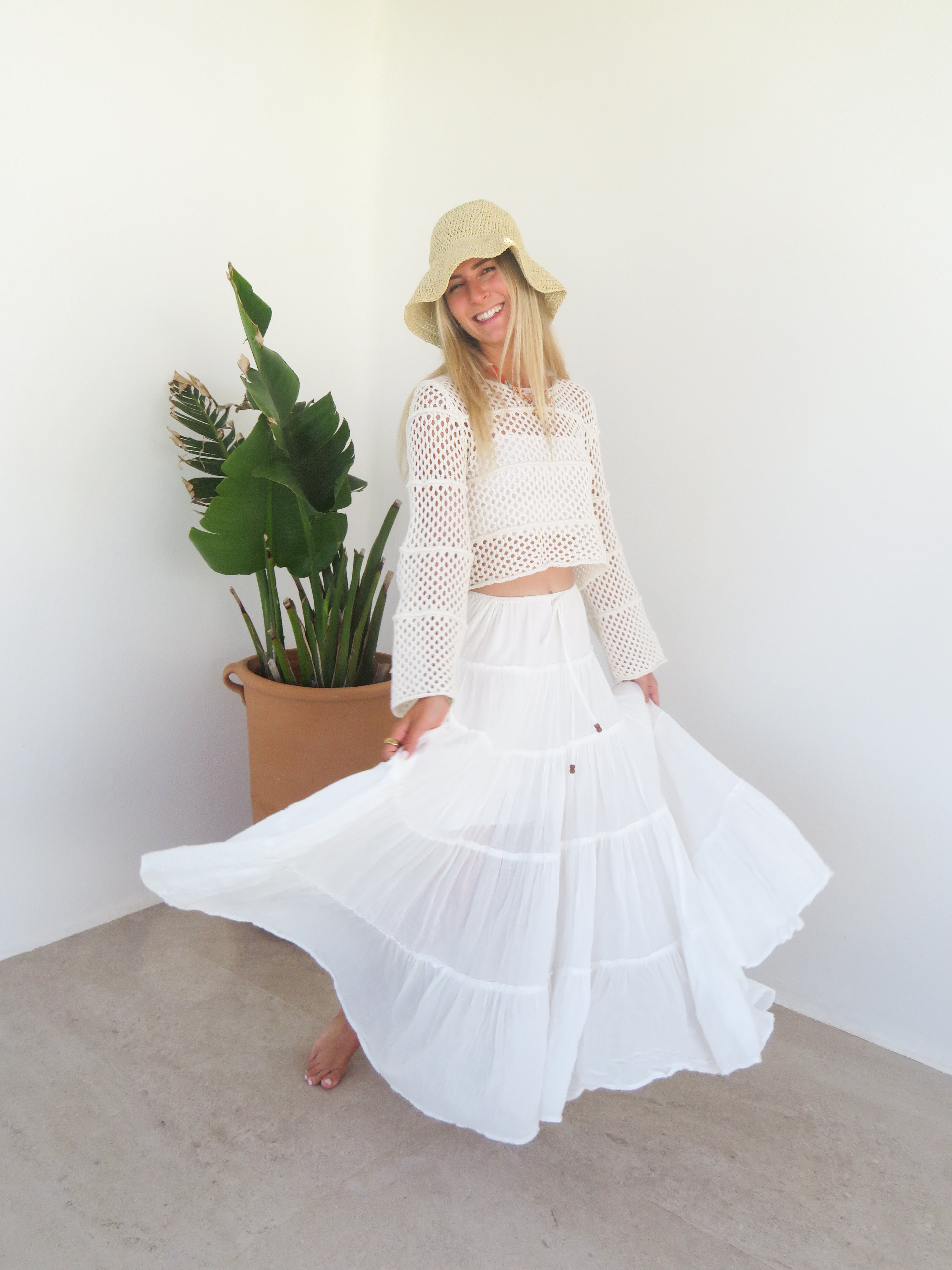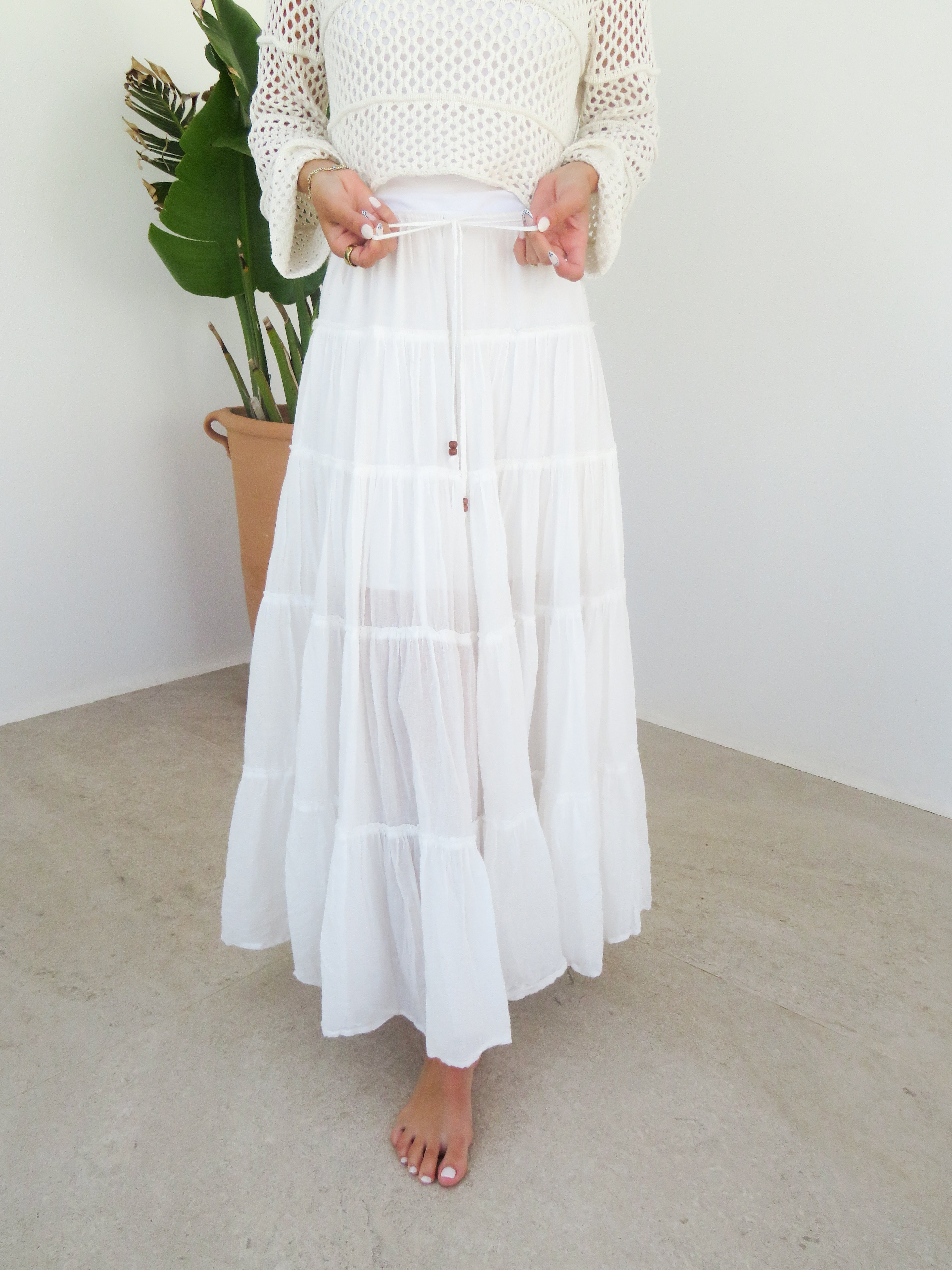 Swish and sway in our She's Cultured Midi Skirt! This dreamy white number features a comfy drawstring waist and flirty tiered design that adds bounce to every step. Fully lined for worry-free wear, this flowy skirt brings effortless charm to your wardrobe. Perfect for those "threw this on but look amazing" days when you want to feel breezy but look put-together!