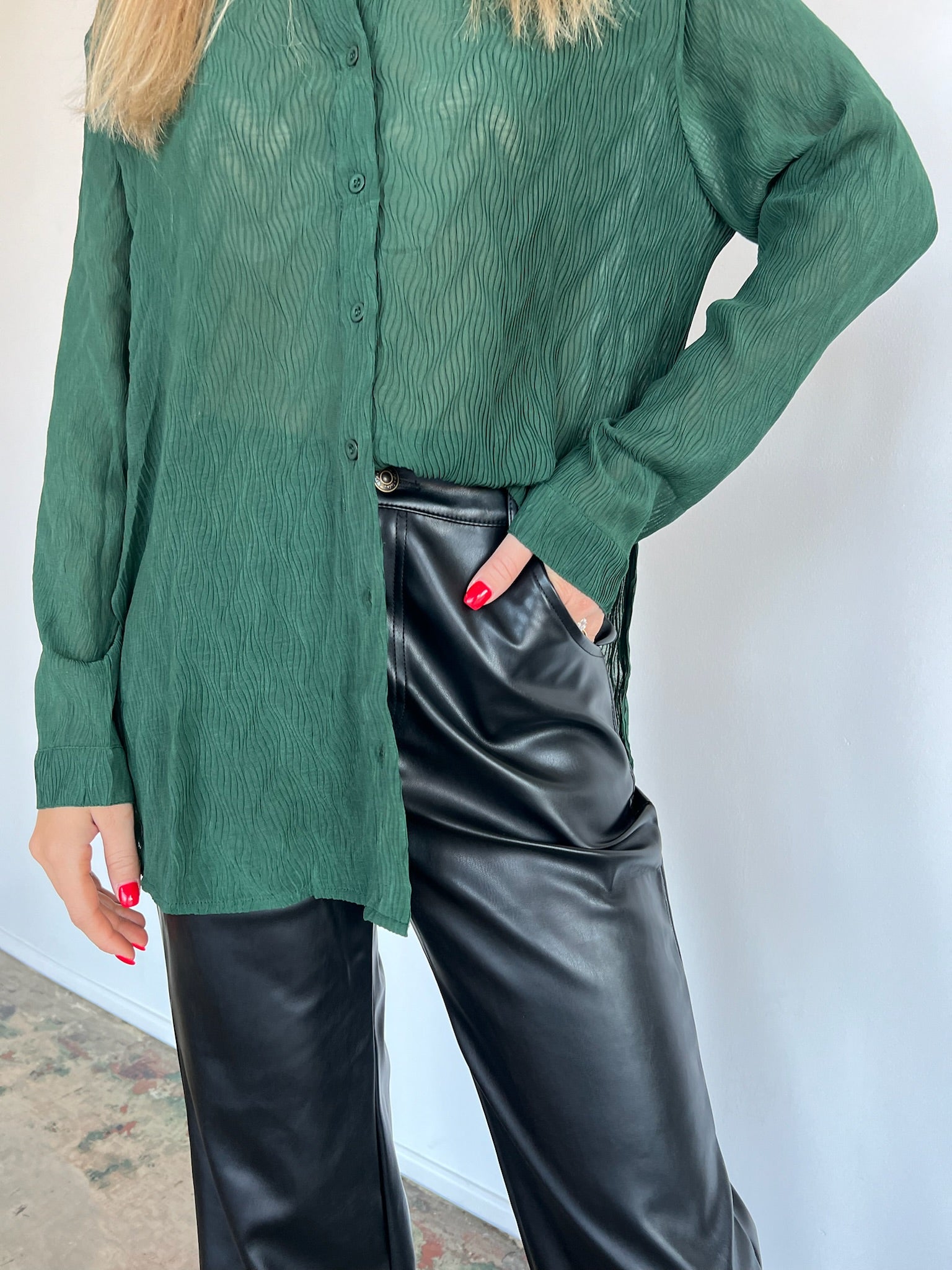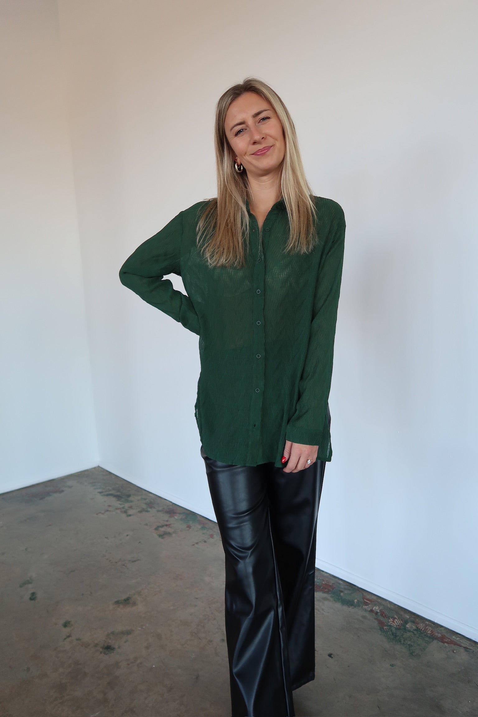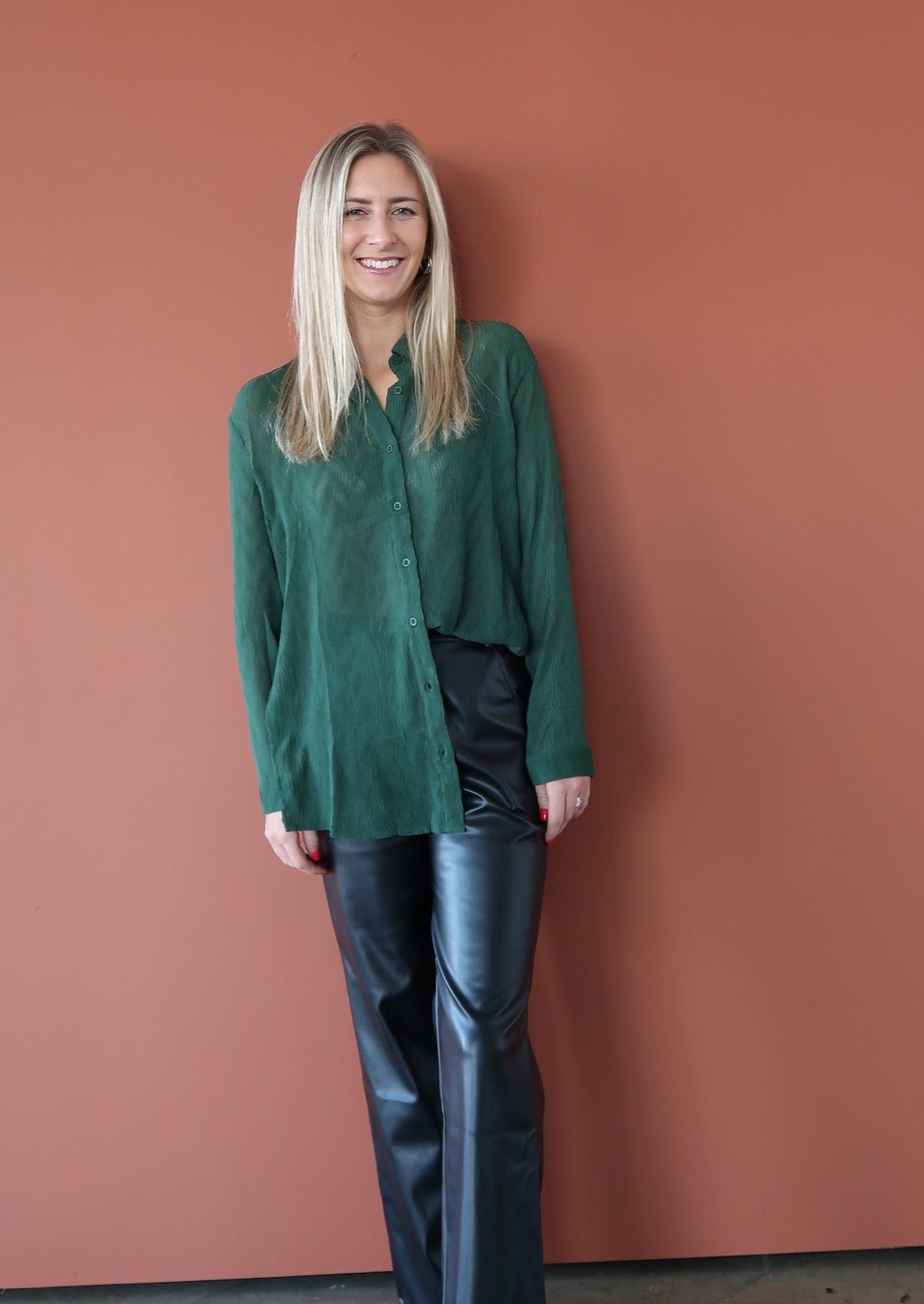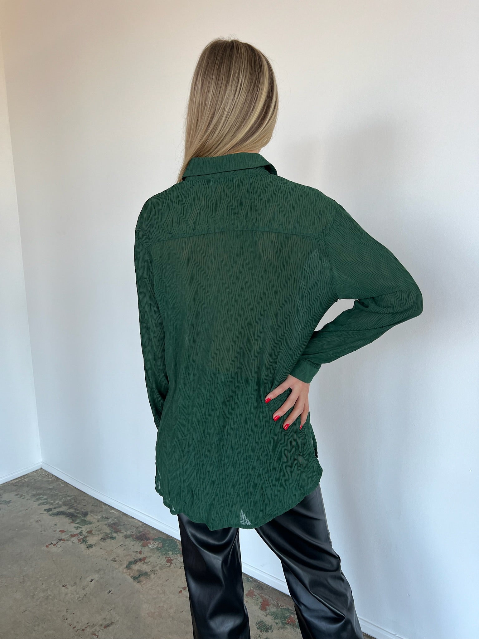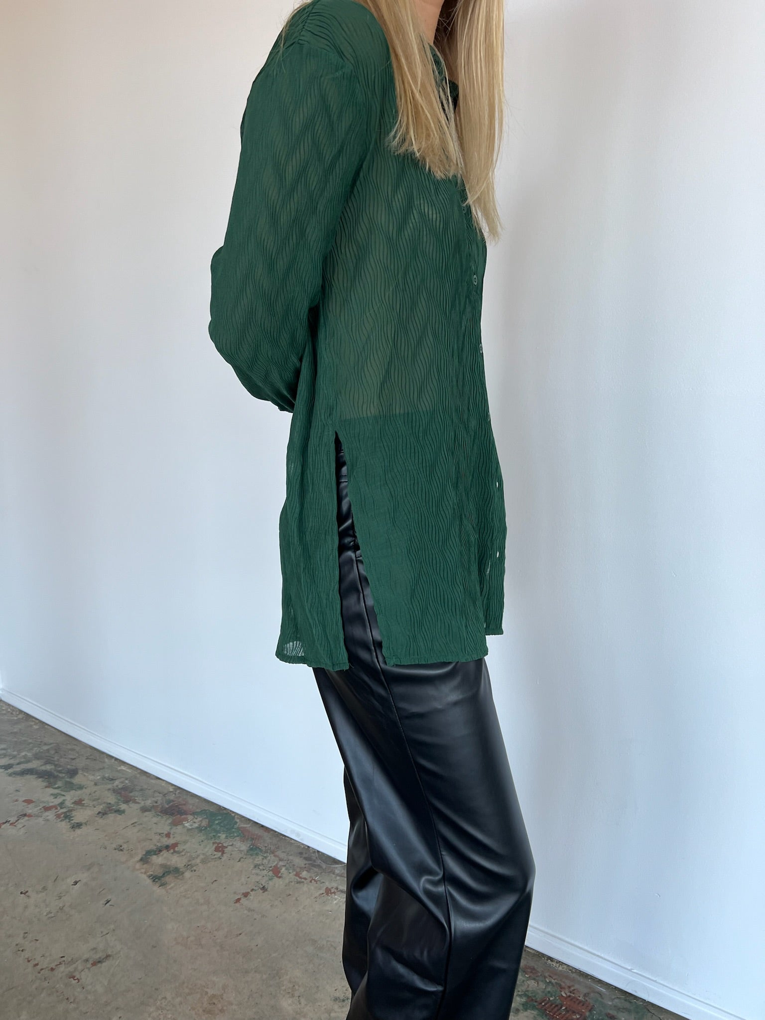 The Wonderstruck Button Down Top is a textured sheer button down top with side slits. We also love the length because it makes it perfect for taking from work to weekend.