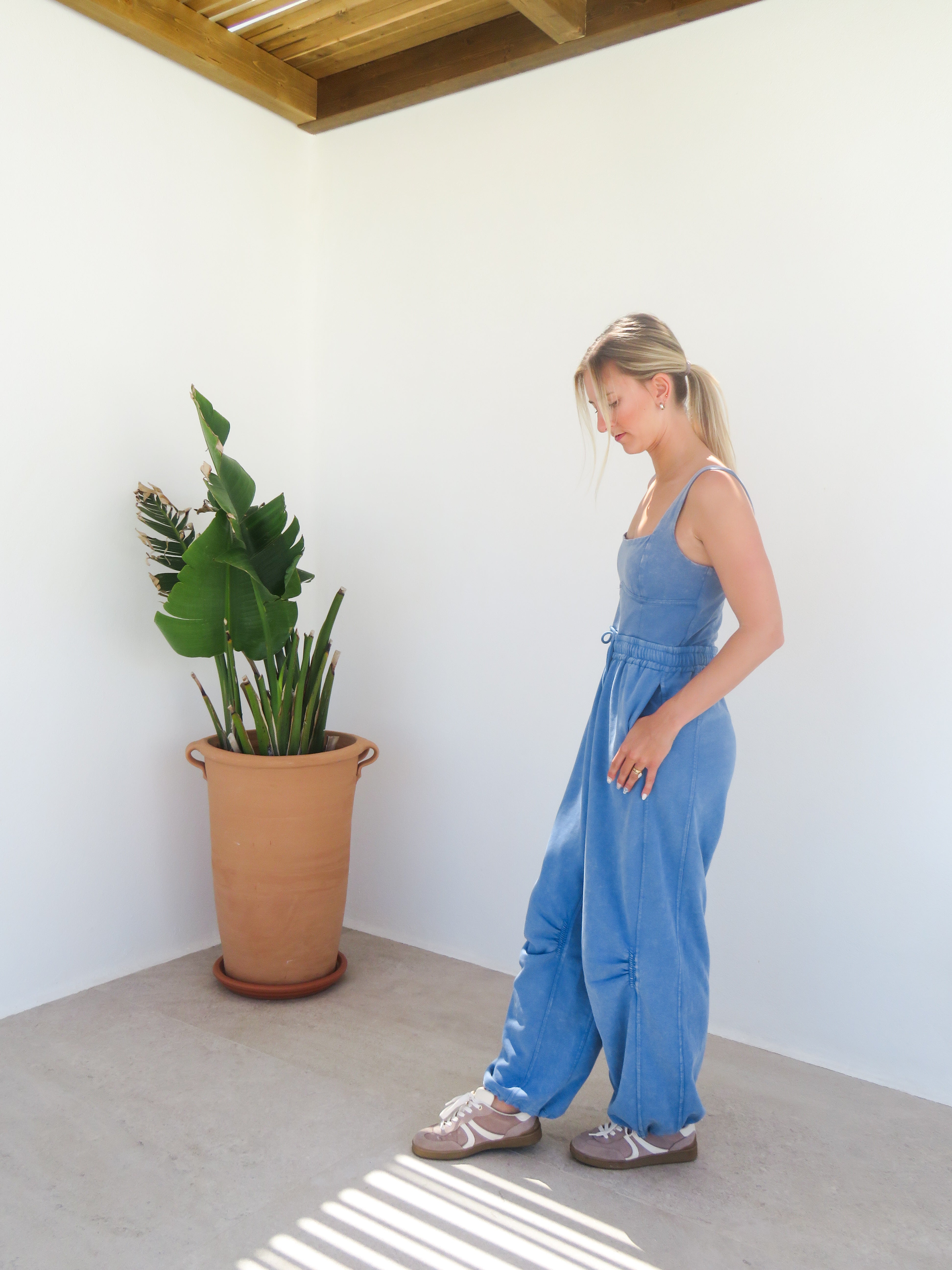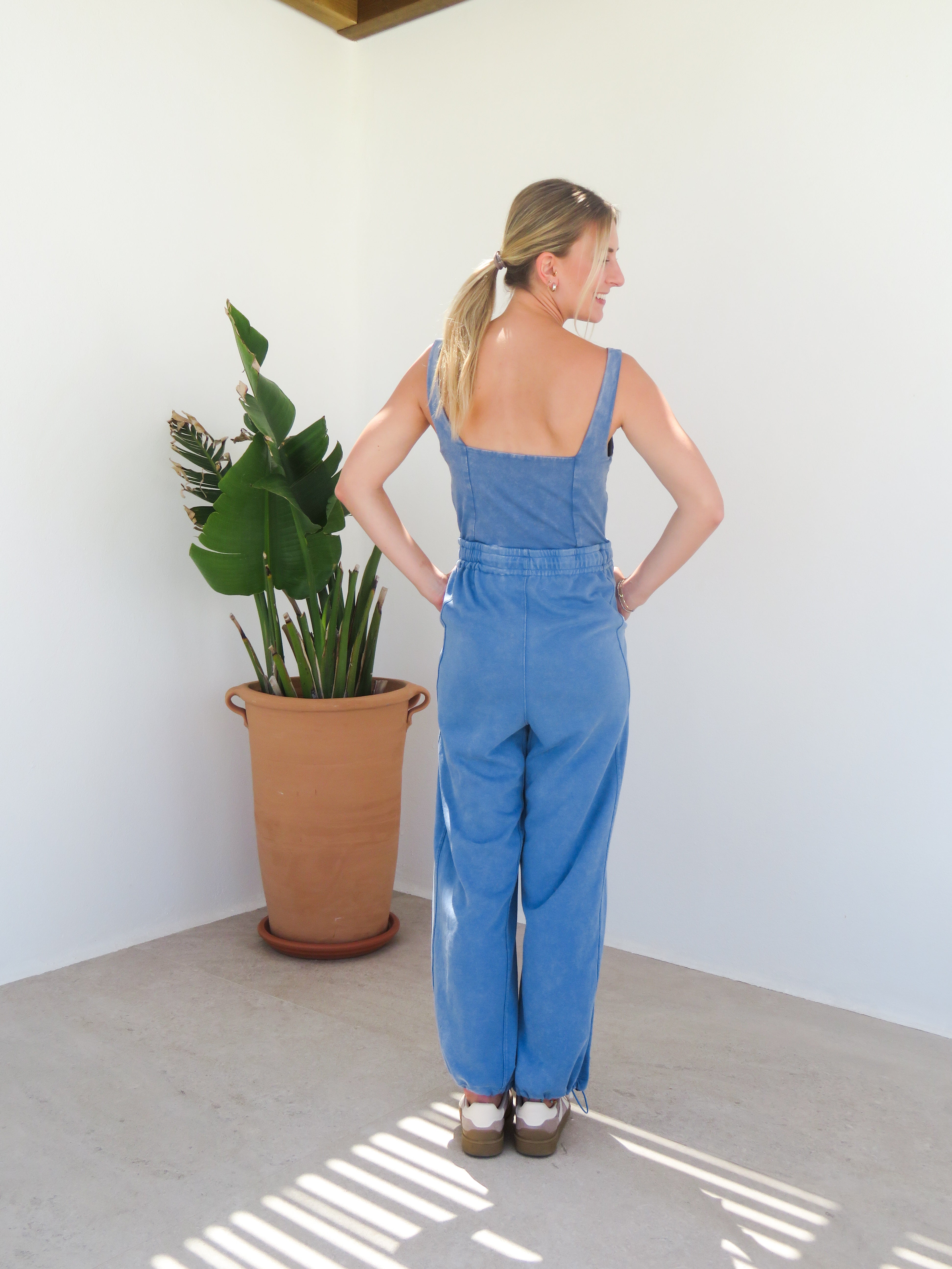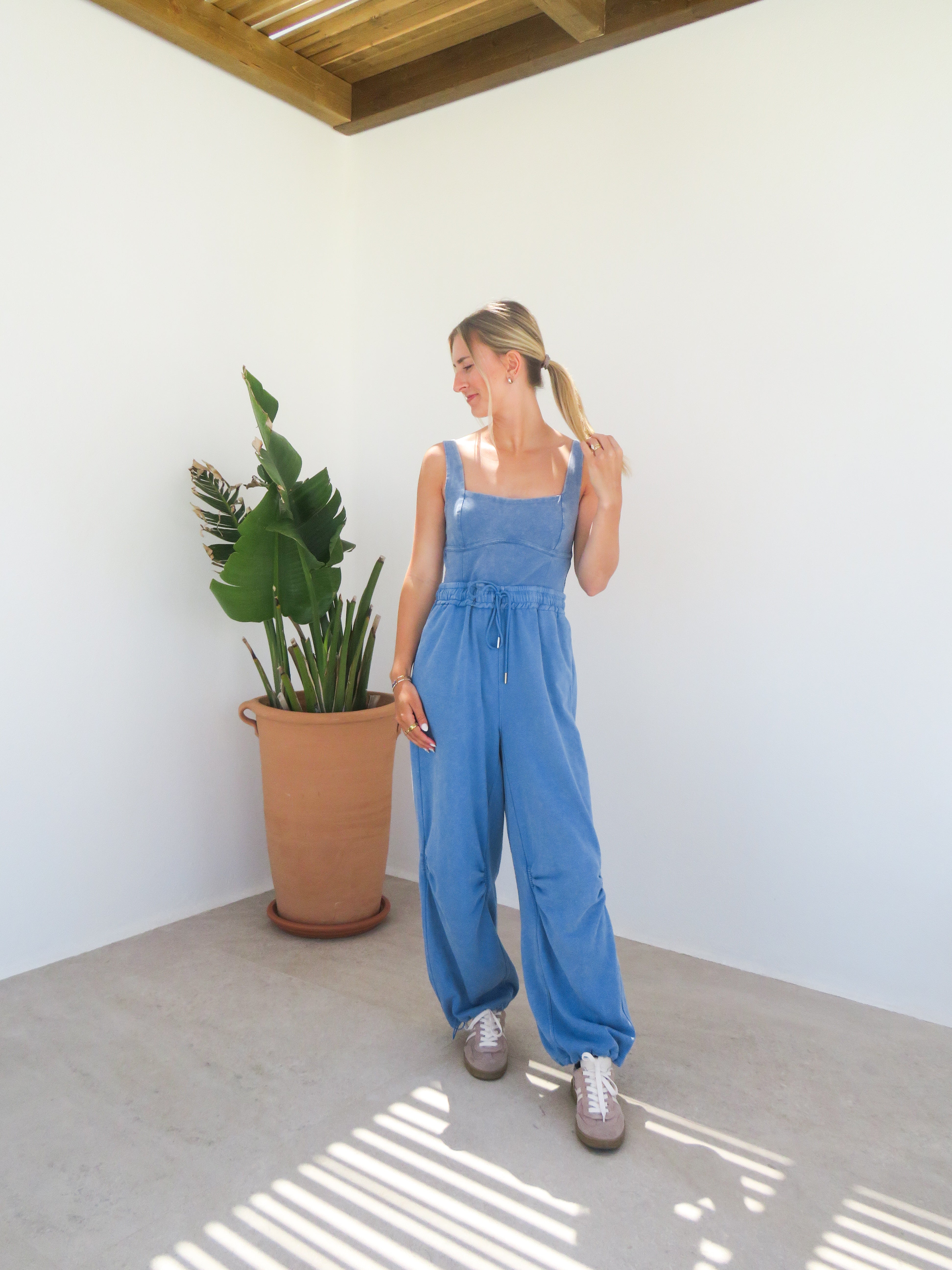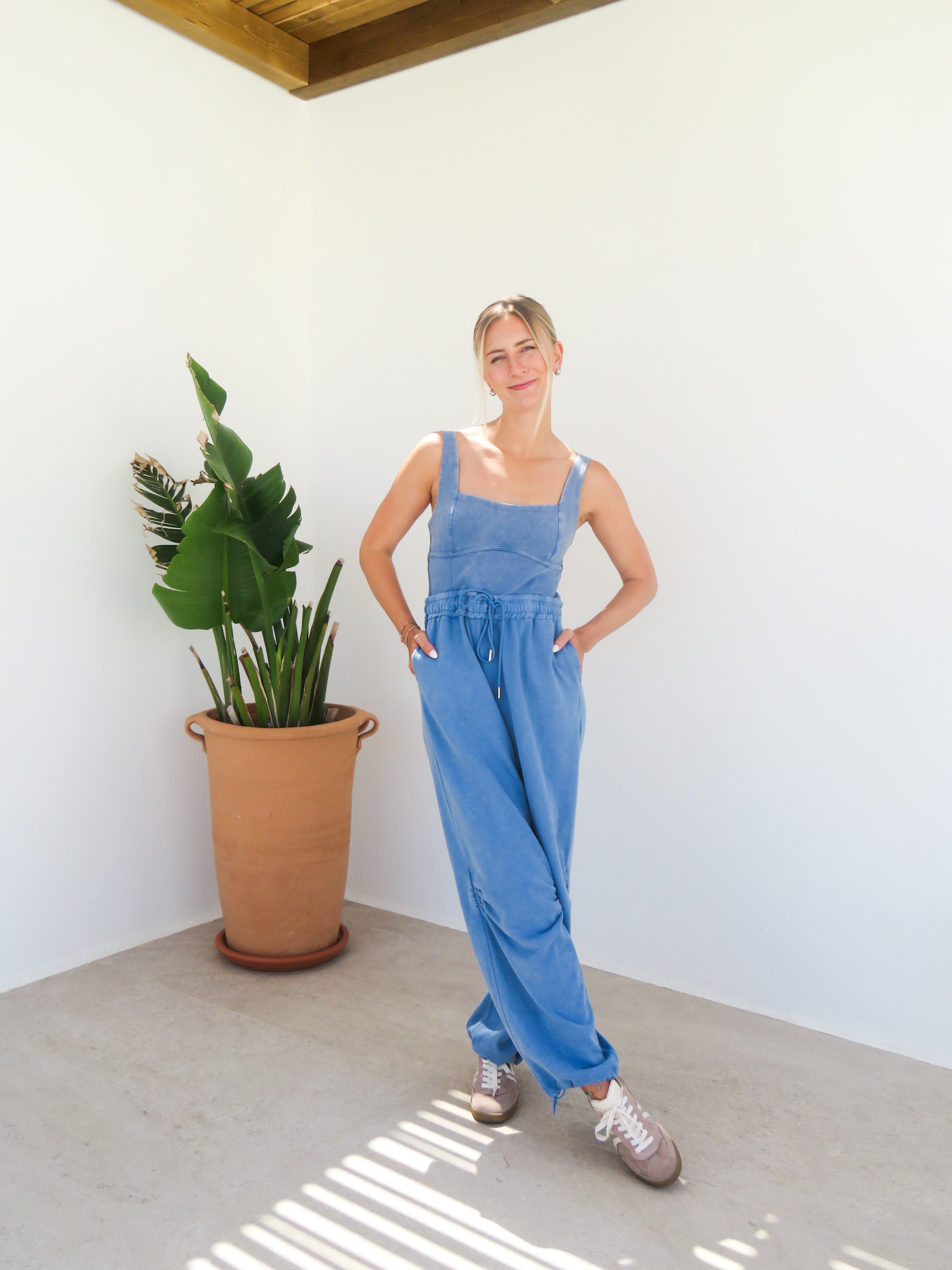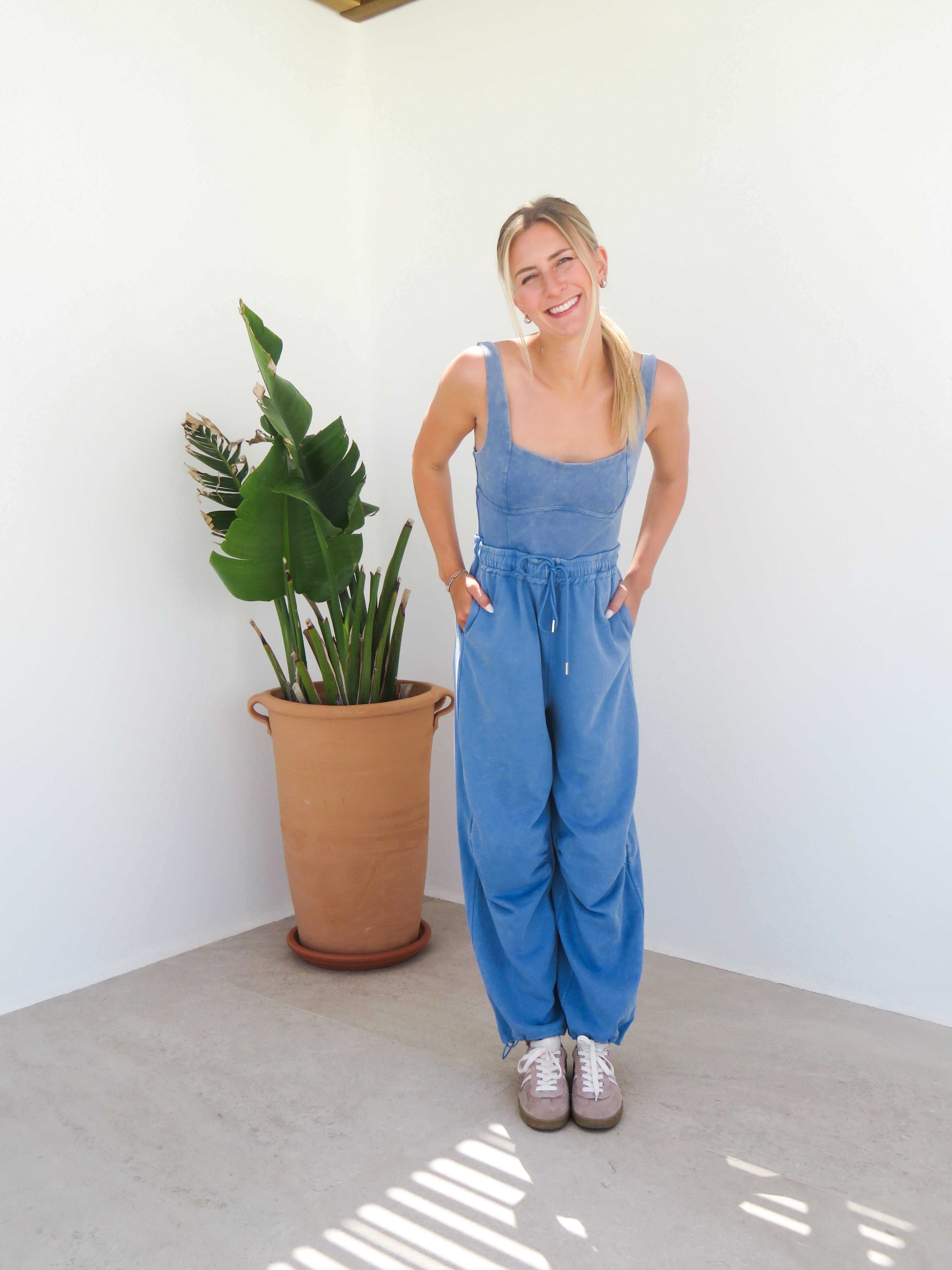 Jet-set in style with our World Traveler Jumpsuit! This playful piece features a flattering bustier-inspired top paired with comfy jogger-style bottoms. The drawstring waist offers adjustable comfort, while barrel legs add a trendy silhouette. Practical pockets make this the perfect outfit for adventures near and far. Ready for takeoff?